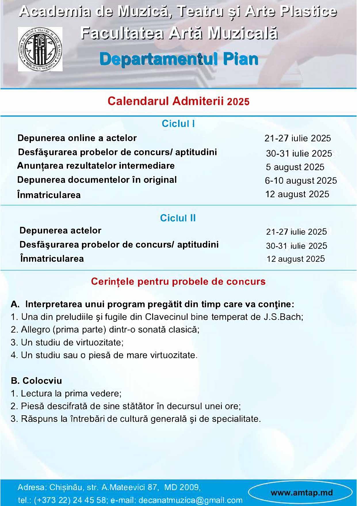 | Secția Pian special | Secția Pian general |